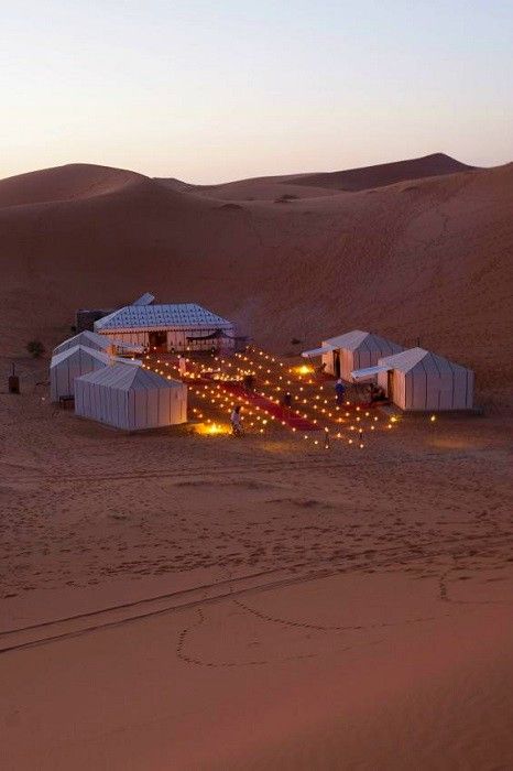 Raggiungiamo M'Hamid El Ghizlane, l'ultimo villaggio prima del grande deserto. Passiamo ai veicoli 4x4 per addentrarci nel cuore del Sahara. Attraversiamo dune dorate per raggiungere il nostro accampamento nomade a Erg Chigaga. Trascorriamo la notte sotto le stelle nel deserto.
